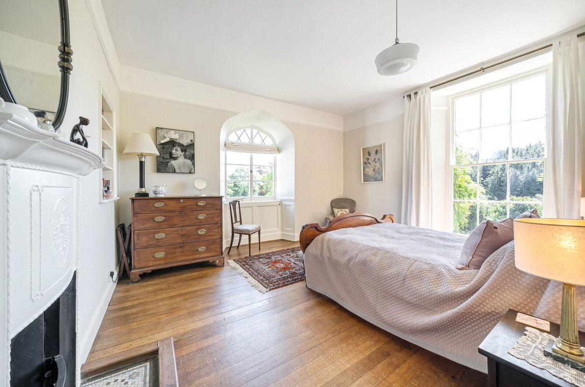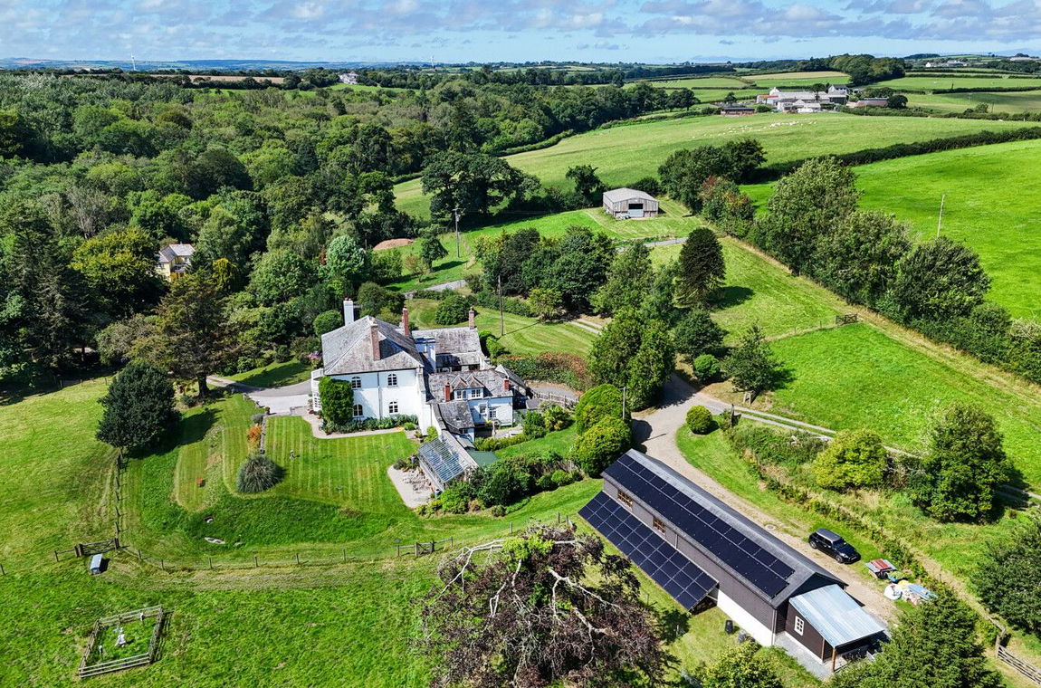 An historic Georgian residence discretely positioned in the rolling countryside north of Launceston, this distinguished south-facing home offers exceptional space, privacy and energy-efficiency. Approached via a long drive and set within around 12 acres of enchanting woodland and paddocks, this characterful country house blends architectural heritage with rural serenity.