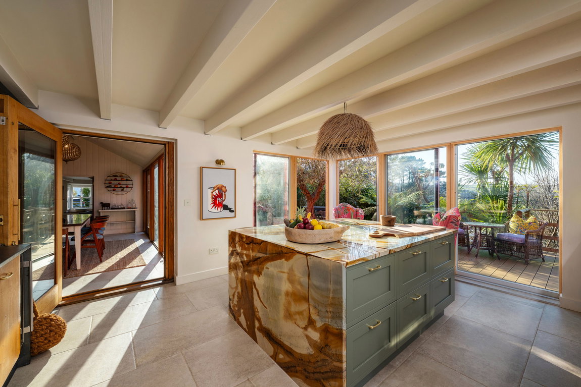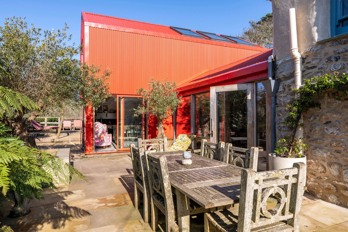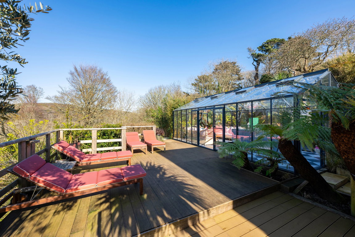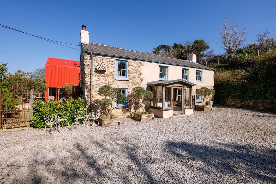 Located in a peaceful woodland setting just inland from Perranporth, and enjoying glorious far-reaching views, this charming cottage has been thoughtfully modernised with a striking and imaginative Scandi-style extension. Set within enchanting and beautifully landscaped gardens of around half an acre, this truly original home has been finished to an exceptional standard, with bespoke and carefully crafted details throughout. Further enhancing its appeal are two studios, a home office, and a remarkable glasshouse-style outdoor kitchen creating a highly distinctive space for entertaining and year-round enjoyment.