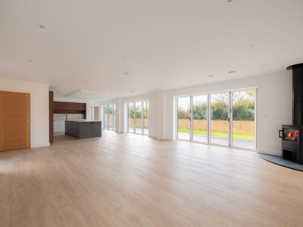 Freehold. Mains electricity and water. Air source heat pump (Daikin ASHP) with Nu Heat underfloor heating throughout, app controlled. Private drainage. Gated forecourt with parking for several cars.