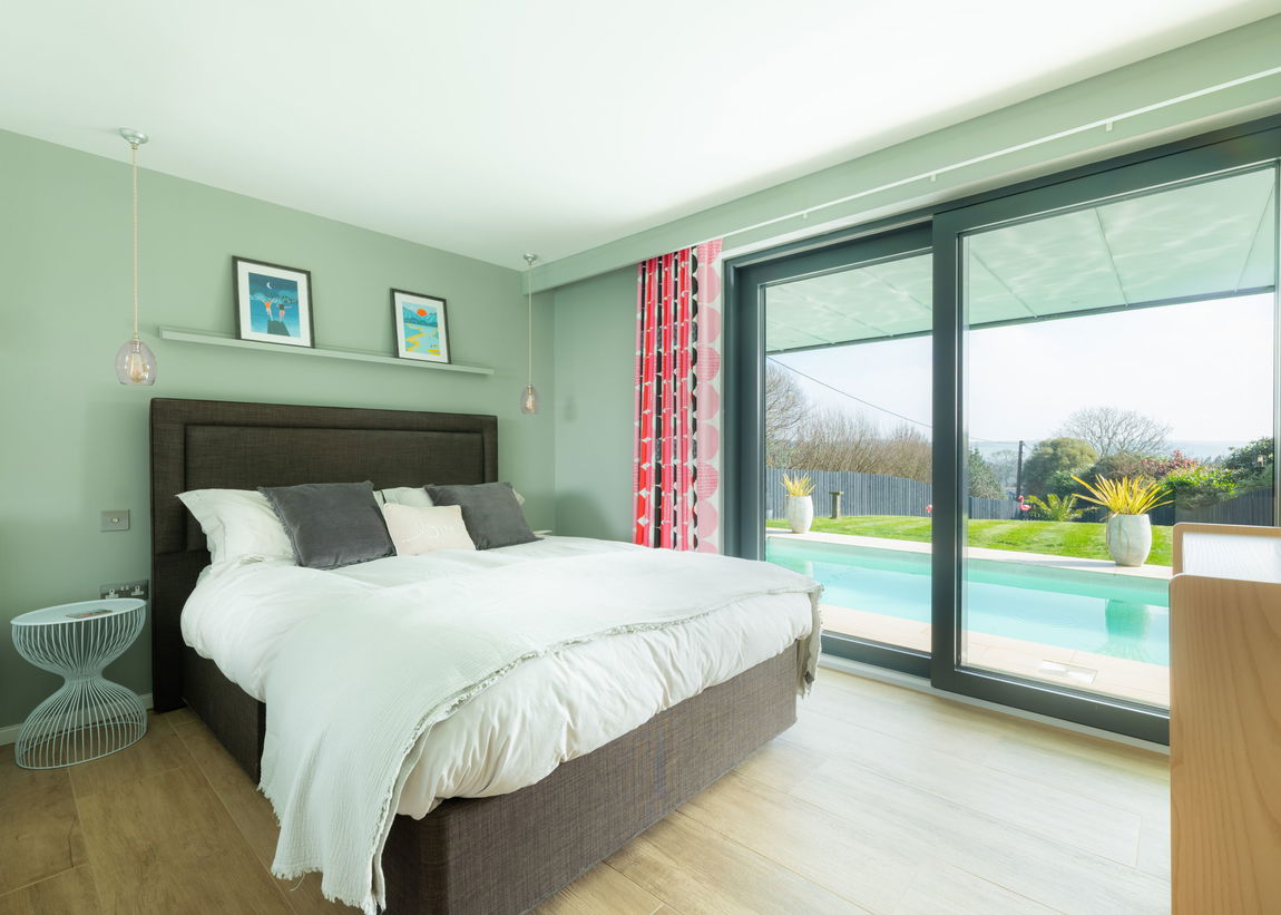 Ground floor – Principal bedroom with fitted wardrobes, en suite shower room, guest bedroom with en suite shower room, two further double bedrooms, family bathroom, pool changing / wet room