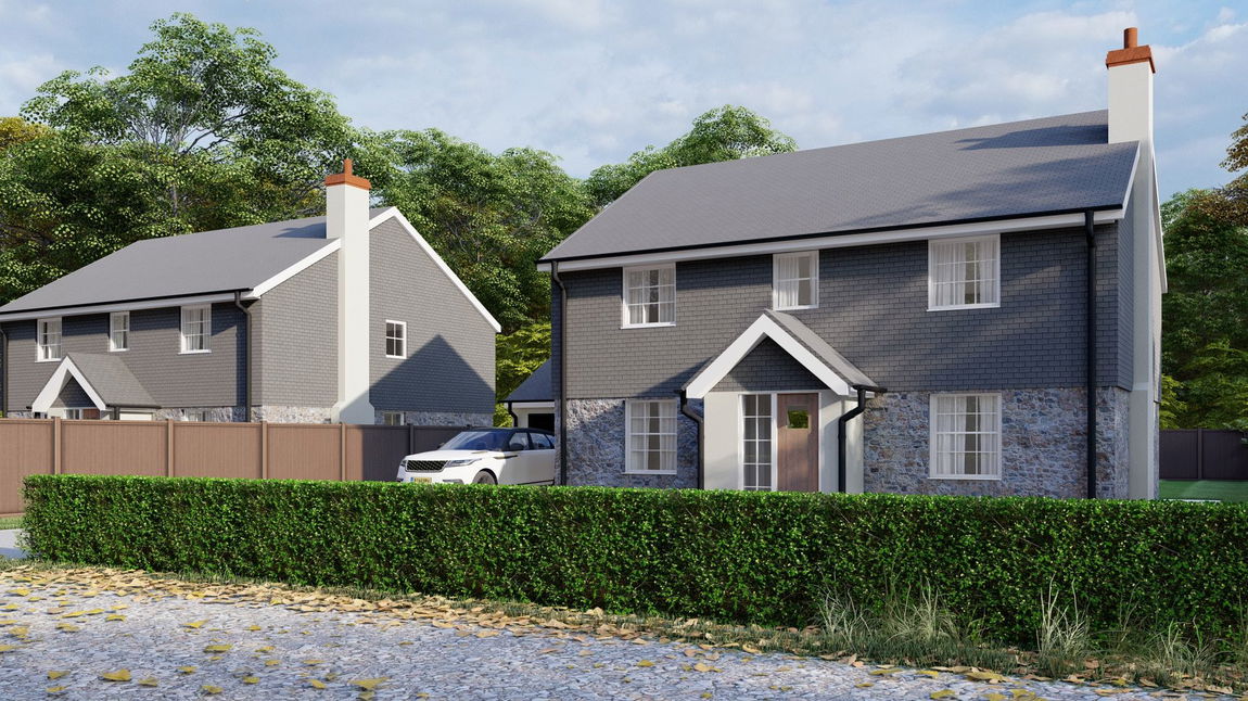 The site has the benefit of a planning in principle (PA25/07798) for the construction of two detached residential properties. Please note that the CGIs shown are indicative and outline only. Due to constraints within the site, the positions and style of the houses may alter when the related reserved matters application is determined.