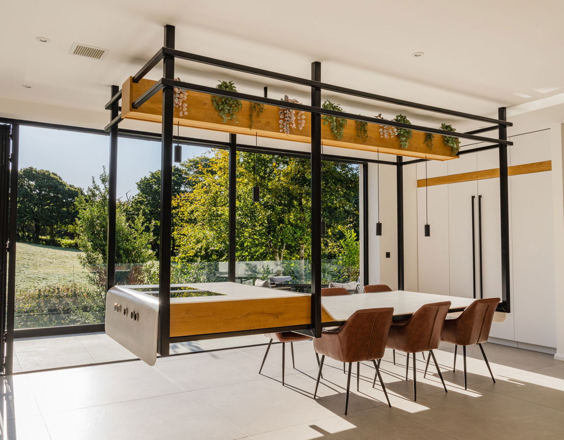 · Designed and installed by Torben Schmidt with RIBA architect Jack Burr, featuring a ceiling-suspended kitchen island.