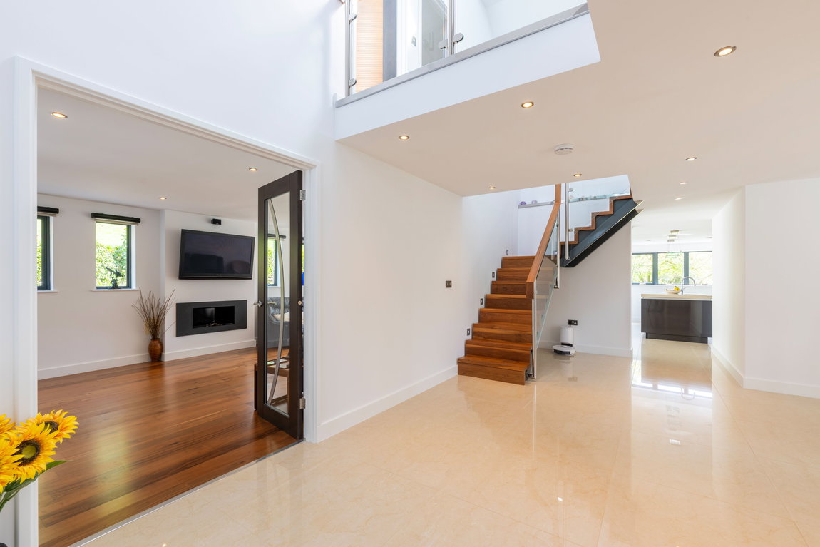 This beautifully executed contemporary home is set within a sheltered valley location close to Penpol Creek, offering light-filled living, clean architectural lines and an effortless connection to its surroundings. Extending to nearly two acres, the private park‑like grounds of sweeping lawns, mature trees and considered planting create a rare sense of seclusion. Perfectly placed between Truro and Falmouth, this is a modern residence of exceptional quality and enduring lifestyle appeal.