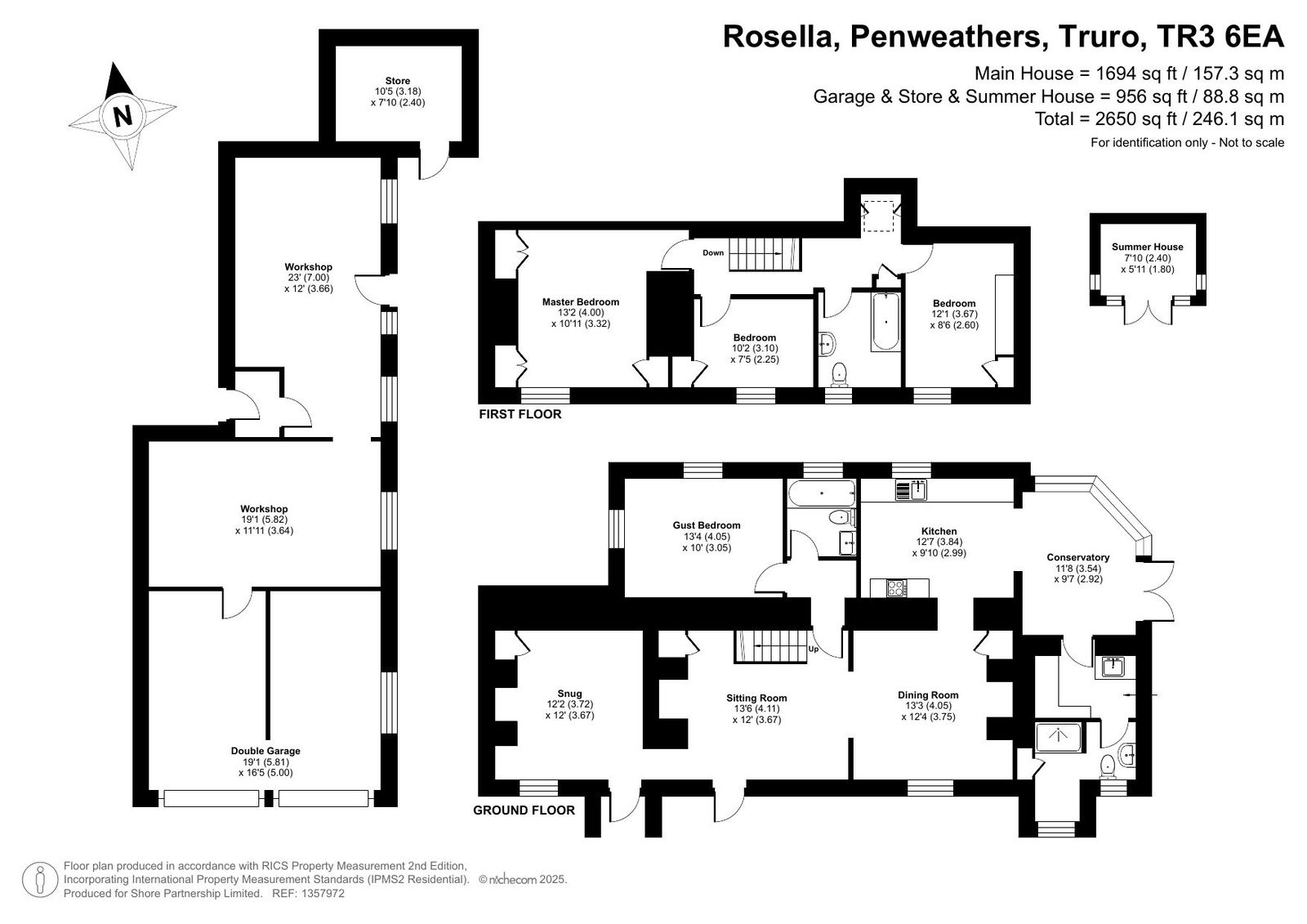 Ground floor - sitting room, dining room, snug, kitchen, conservatory, utility room, shower room, rear hall, double bedroom and bathroom/W.C
