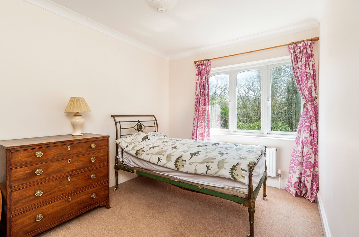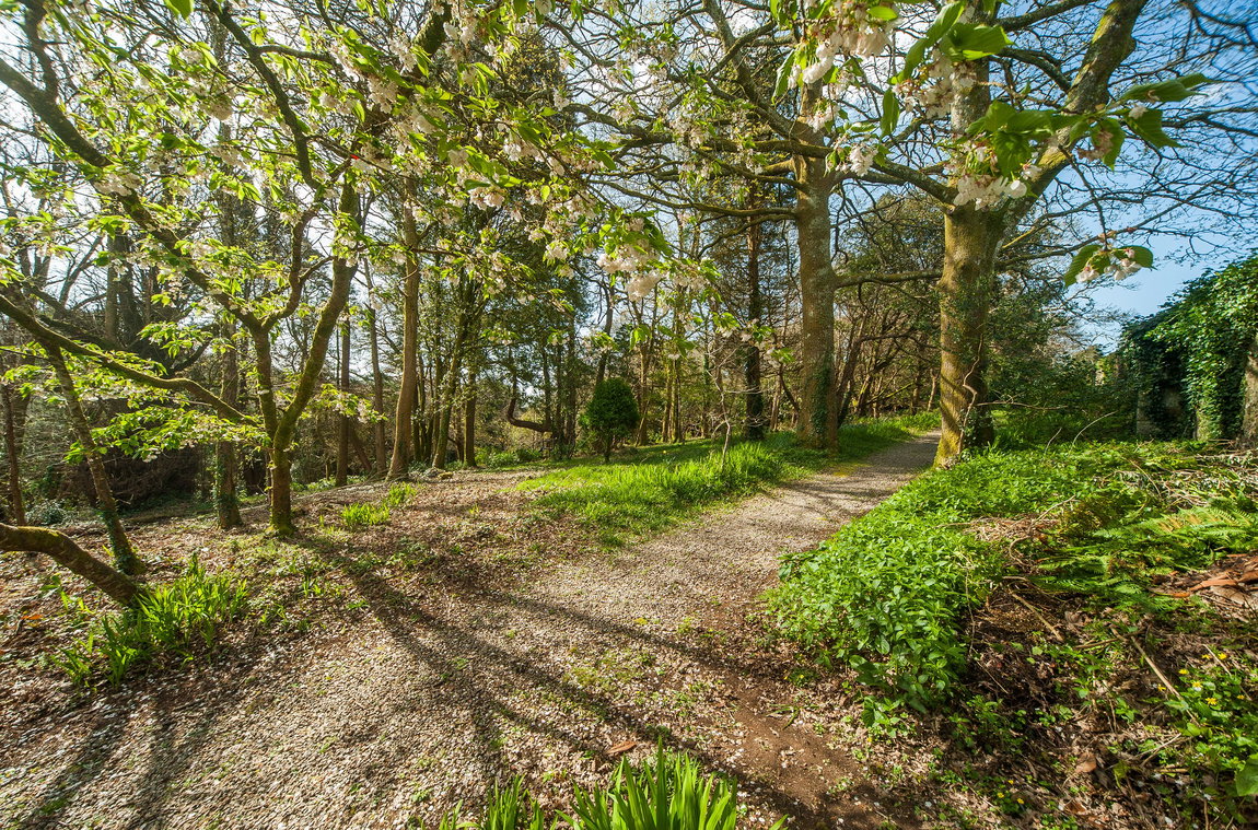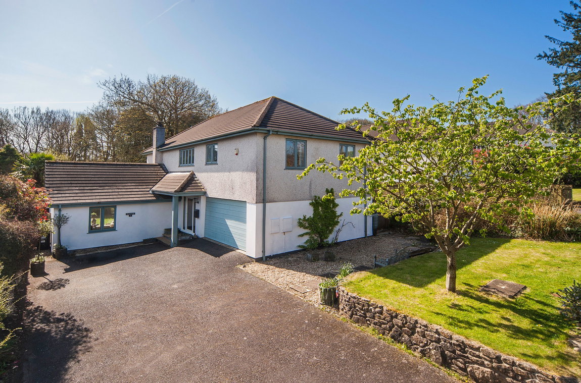 Perranwood is a substantial detached family home set within a wonderfully private and peaceful position on a select no-through road, ideally placed for Truro, Falmouth and the highly regarded villages of Perranwell and Devoran. Occupying an exceptional plot, the property enjoys a sunny walled garden, generous driveway parking and a double garage, together with the rare benefit of access to and co-ownership of nine acres of woodland.